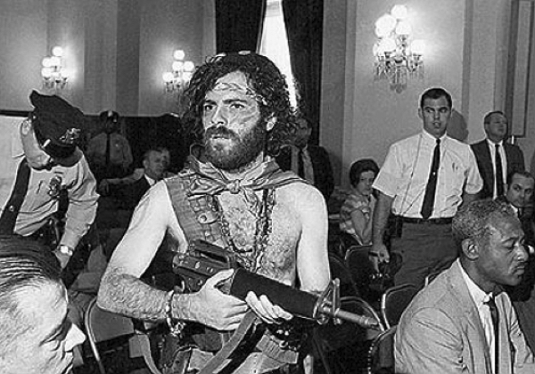 Rubin had a genius for slogan, gesture and costume. He showed up at hearings of the House Committee on Un-American Activities (HUAC) dressed as a soldier in the American Revolution of 1776. One of the photos in Do It!, shows him at HUAC with his lawyer Beverly Axelrod.
