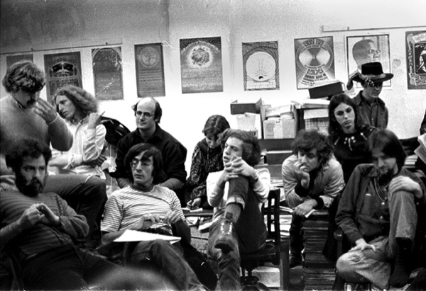 National Yippie “Summit” in NYC, 1971 (first row, left to right) Jerry Rubin, Abe Peck, David Fenton,