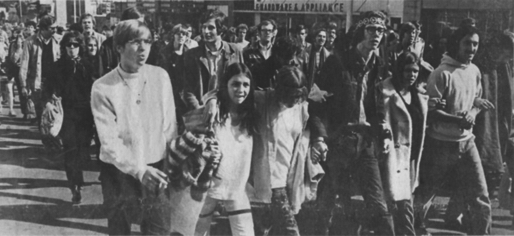 En route back to New York, he stopped off in Bloomington to visit friends and heard that Clark Kerr, former president of the University of California Berkeley and bête noir of the ’64 Free Speech Movement at Berkeley, would be speaking at I.U. By coincidence, Jerry Rubin, former UC Berkeley student and infant terrible of the FSM (and Jim’s “co-conspirator” on the just- finished Do It! book project), was booked to speak at a Vietnam Moratorium event at nearby