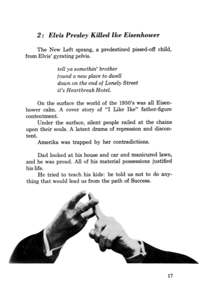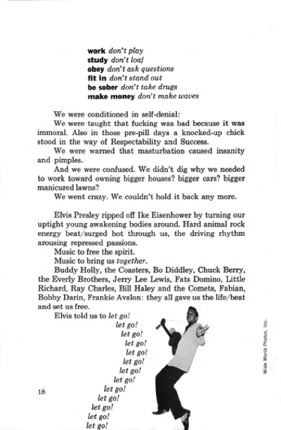 “This book,” the back cover blurb also boldly stated, “will become a Molotov cocktail in your very hands.” Indeed, Do It! lit a fuse against all of the tired old literary rules as young avant-gardist writer/editor James Retherford and famed McLuhanist art director Quentin Fiore (The Medium Is the Massage and War and Peace in the Global Village) sought to transcend linearity of the printed page and create a book that would jump off the page with the visual impact of the Six O'Clock News — with right-on clinched-fist salutes to El Lissitzky, the Marx Brothers (including Karl), Zap Comix, and Walter Cronkite.