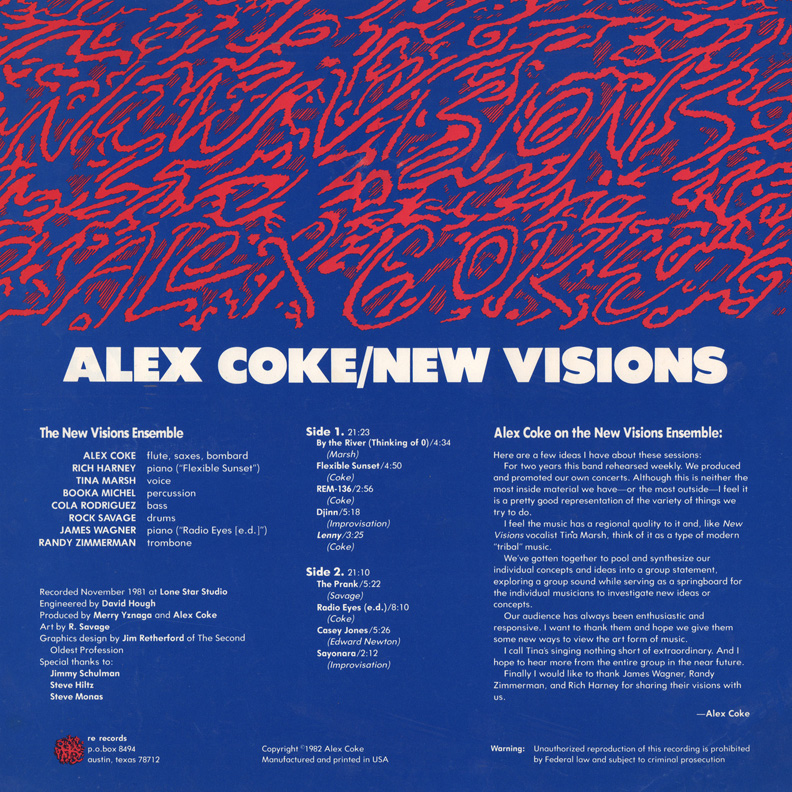 Just as the Creative Opportunity Orchestra’s repertoire was not confined to performance, Tina’s creative interests were not confined to the orchestra. She composed, arranged, and performed music for choreographers Deborah Hay, Yacov Sharir and José Luis Bustamante, and longtime friend Sally Jacques. She performed and recorded with composer/saxophonist Alex Coke on Alex’s early 1980s gem, “New Visions” (whose album cover